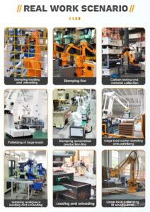 Robot công nghiệp SZGH-B1500-10C được ứng dụng trong dây chuyền tự động hóa sản xuất, đặc biệt cho các công việc xếp pallet, gắp – đặt và bốc xếp thùng carton, bao tải, sản phẩm đóng gói. Robot phù hợp với các ngành thực phẩm, đồ uống, vật liệu xây dựng và logistics, giúp tăng năng suất, giảm chi phí nhân công và nâng cao độ chính xác trong sản xuất.