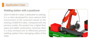 Robot SZGH-H1500-B-6 được thiết kế cho các ứng dụng hàn tự động trong dây chuyền sản xuất hiện đại. Với cấu trúc khớp nối 6 trục linh hoạt, robot có khả năng thao tác chính xác trong nhiều vị trí hàn khác nhau. Hệ thống điều khiển thông minh giúp robot vận hành ổn định, đảm bảo chất lượng mối hàn đồng đều trong thời gian dài.
