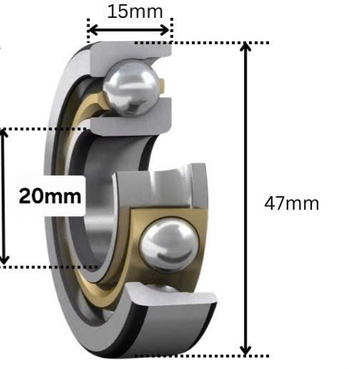 - 47: Đường kính ngoài của vòng bi là 47 mm.